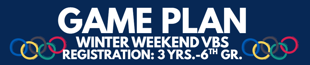 Game Plan VBS by Valley Kids will take place Friday and Saturday, January 30-31 from 6:00-8:15pm & February 1 at 10 am. On Sunday, February 1, families are warmly invited to join us for our 10AM service where the children will showcase the exciting songs they've learned during VBS.